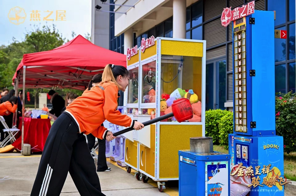隨后,元宵喜樂游園會的帷幕悄然拉開,游園現(xiàn)場設(shè)計(jì)了五大游戲環(huán)節(jié),從傳統(tǒng)經(jīng)典的錘丸、竹馬跳欄,到現(xiàn)代化的記憶翻轉(zhuǎn)、投籃機(jī)、接棒機(jī),融匯古今,令人意猶未盡。別具匠心的非遺傳統(tǒng)漢服簪花體驗(yàn),與大力錘機(jī)、娃娃機(jī)、彈彈珠機(jī)、滾輪印章等趣味互動,更添團(tuán)圓喜氣。大家在打卡互動中收獲歡笑、凝聚情誼,暢享喜樂元宵。
